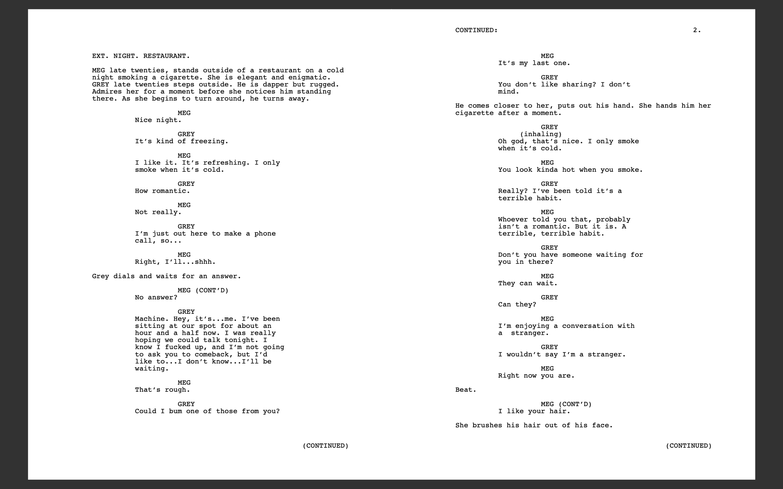 This is a story that came from a vision I had in my head. I was sitting in my favorite coffee shop in Los Angeles, and I imagined two people having a conversation late at night while sharing a cigarette. The story that came out is something I never thought Iād write. I have always written from personal experience, but this was not an experience I had. I have however, had my heart broken. Like all of us. This is a story of heart break.